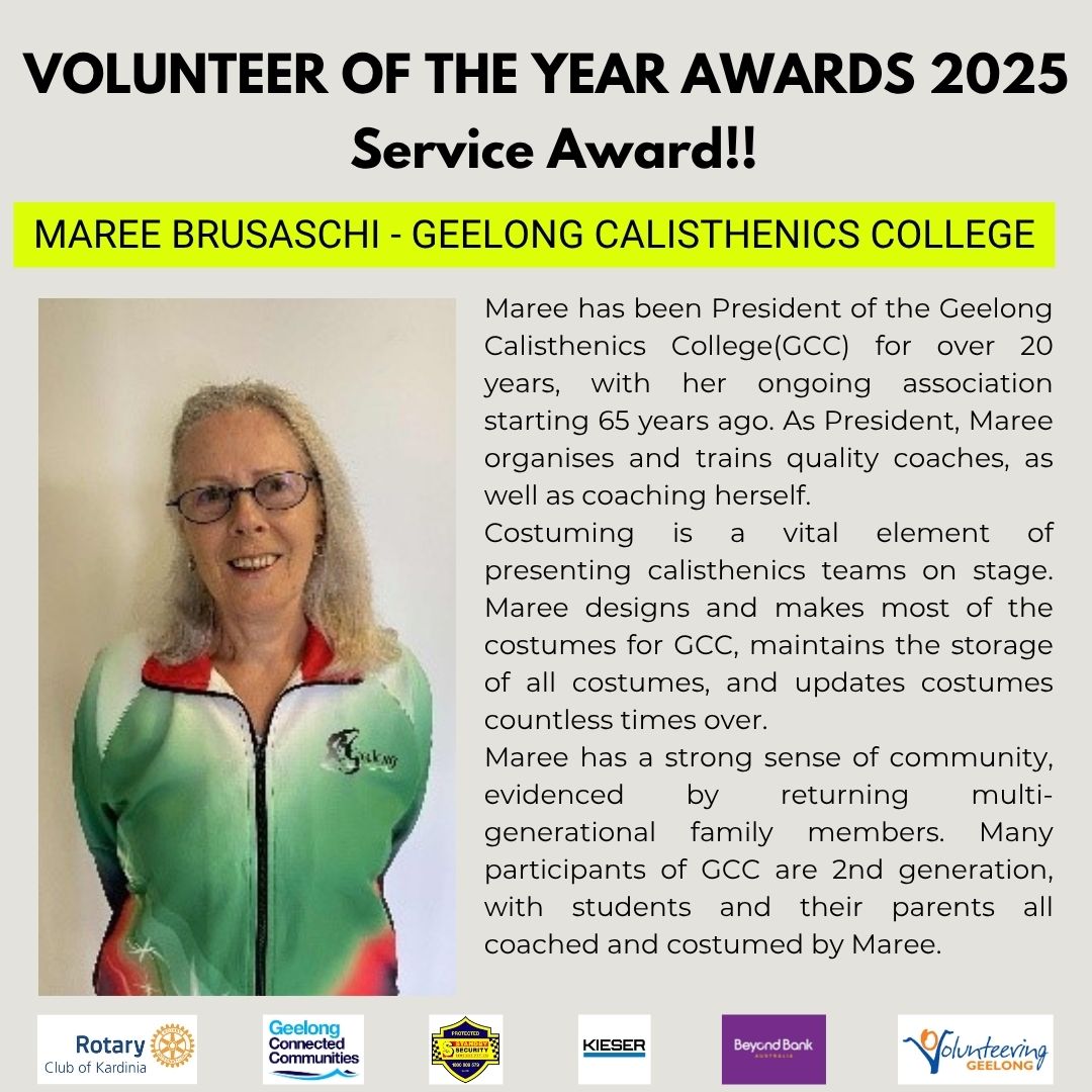 - Service Award – Maree Brusaschi, Geelong Calesthenics College